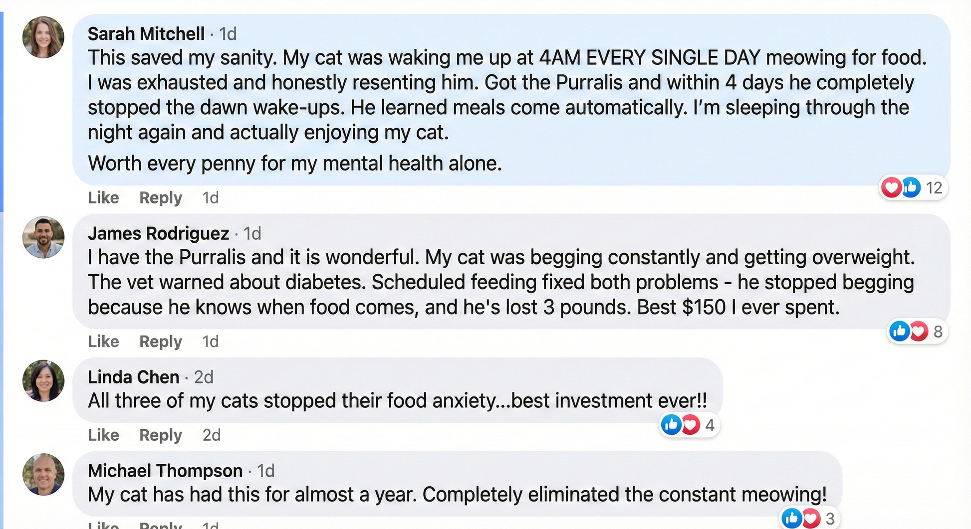 Cats thrive on consistency. When meals arrive late or unpredictably, it creates stress — for them and for you.